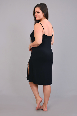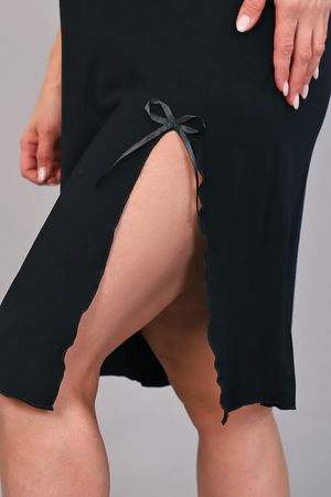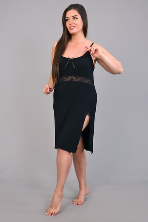 Сорочка ночная с эластичным кружевом из однотонной вискозы. Изящная модель на узких бретелях, с кружевом чуть ниже груди и разрезом на передней полочке. Декольте, разрез и низ сорочки обработаны волнистым краем. Сорочка уютная, комфортная для сна.