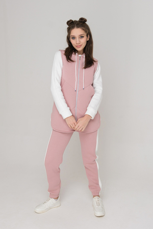 Елена Николаевна27.02.2023 в 15:18Взяла жилет и брюки в цвете "мята" с белой толстовкой. Получился комплект в стиле "оверсайз" - смотрится хорошо. Но жилет на 46 размер рост 160 длиноват. Ткань с начесом, теплая