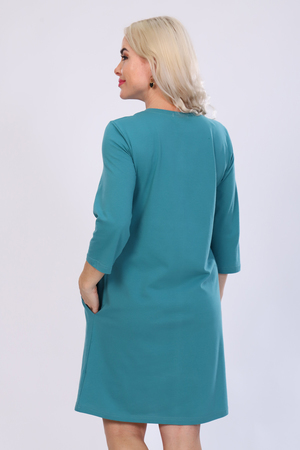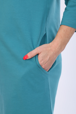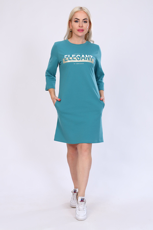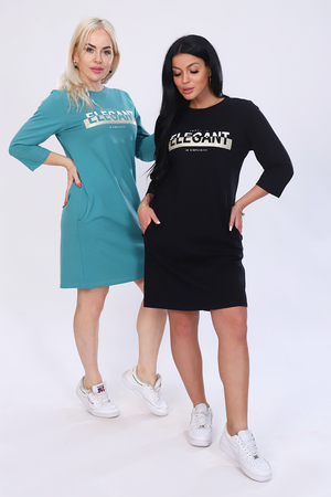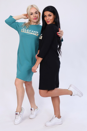 Молодежная туника из кулирки 100% хлопок. Туника полуприлегающего силуэта длиной до колен, рукав 3/4, вырез горловины круглый, два кармана. Дизайн туники дополнен стильным, элегантным принтом.