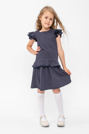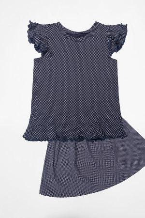 Костюм Полька, футболка и юбка, выполнен из мягкой кулирки качества пенье, 100% хлопок. Приятный к телу. Подходит как для садика, так и для прогулок в теплое время года. Легкий в уходе, хорошо стирается, не деформируется при стирке, не линяет.
