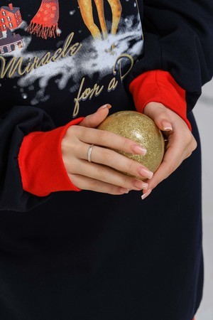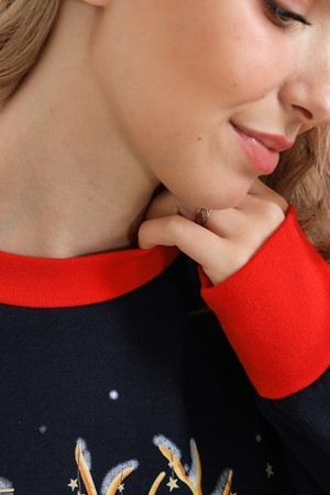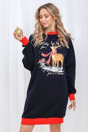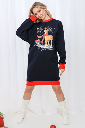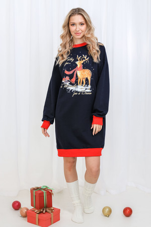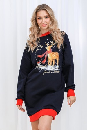 Олени - неотъемлемый атрибут Рождества. Традиция использовать в новогоднем убранстве рождественских оленей завоевала большую популярность во всём мире. В этой уютной удобной домашней тунике из футера двух нитки с начёсом комфортно находиться в домашней обстановке. В ней можно встретить праздник, использовать в повседневной носке и в качестве подарка. Туника свободного кроя, рукава с напуском. Все манжеты на изделии выполнены из плотной рибаны с лайкрой. Длина рукава в измерениях указана от основания шеи.