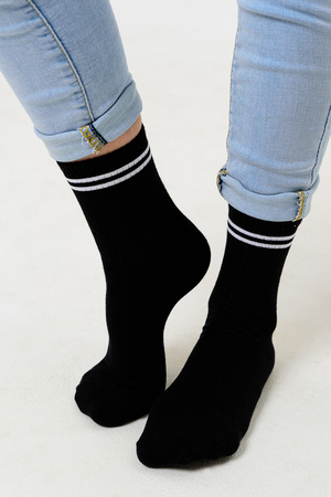 Стильные женские носки в лаконичных расцветках с контрастными полосами. В упаковке 3 пары одного цвета на выбор - белого или черного. Отлично сочетаются с любой обувью - лучший вариант на каждый день