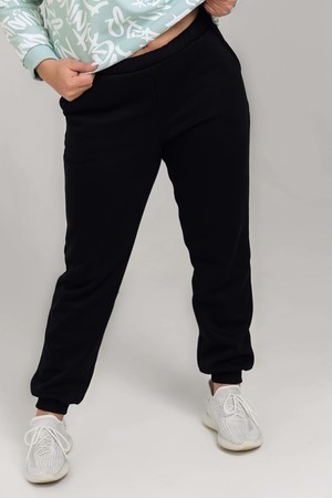 Брюки с начесом из футера 3-х нитки, пенье качества. Качество пенье - это высочайшее качество полотна. На ощупь полотно гладкое и шелковистое, не склонного к образованию катышков. Брюки выполнены в классическом черном цвете, что позволяет комбинировать их с различными расцветками толстовок. Прекрасно смотрятся в комплекте с толстовками 50525, так как оба изделия выполнены из полотна прекрасного качества. Шелковистый начес очень приятен к телу. Манжеты выполнены из качественной рибаны.