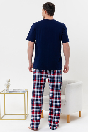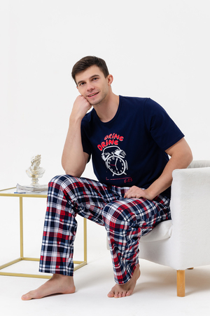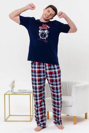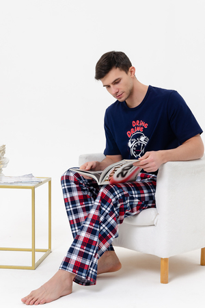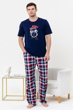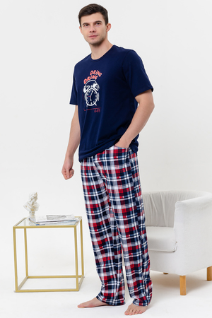 Костюм мужской состоит из футболки и брюк, состав 100% хлопок. Футболка прямого, свободного кроя, горловина круглая, рукав втачной, низ подогнут на плоскошовной машине, на полочке принт. Брюки прямого кроя, в боковых швах прорезные карманы, низ подогнут на плоскошовной машине. Данный костюм идеально подойдет для дома. Легкий в уходе.