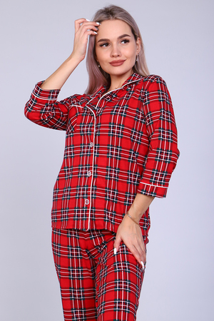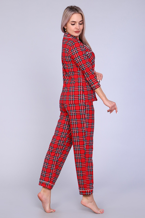 Уютная стильная пижама женская состоит из брюк и рубашки. Рубашка с 3/4 рукав, полуприлегающего силуэта, на пуговицах, с воротником в английском стиле обработан атласным кантом. Классическая расцветка, натуральная ткань, полуприлегающий силуэт. Комплект женский может использоваться и как домашняя пижама. Он также станет отличным приобретением для беременных и кормящих женщин, в подарок, маме, сестре, бабушке, подруге, женщинам больших размеров.