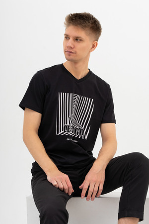 Футболка - универсальный элемент мужского гардероба, она должна быть качественной и стильной! В коллекции «Оптические иллюзии» представлены мужские футболки из 100% хлопка. Прямой крой футболки с коротким рукавом совместим с большинством вещей: брюки, джинсы, длинные и короткие шорты, джемпер, кардиган или пиджак. Дополнив наряд любимыми кроссовками, вы создадите модный повседневный образ для большого мегаполиса, подходит для офиса, для отдыха.