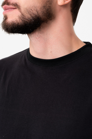 Футболка мужская с длинным рукавом выполнена из ткани кулирка 100% хлопок. Горловина обработана рибаной в цвет ткани, в плечевых швах и воротнике - усиление кантом и отстрочкой