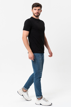 Футболка мужская с коротким рукавом выполнена из ткани кулирка 100% хлопок. Горловина обработана рибаной в цвет ткани, в плечевых швах и воротнике - усиление кантом и отстрочкой. Плотность изделия 145гр.