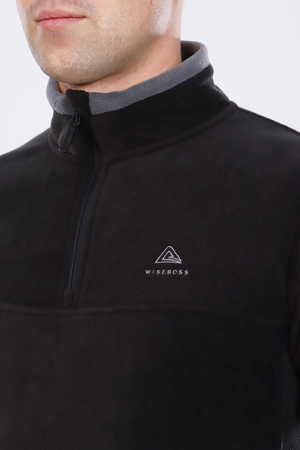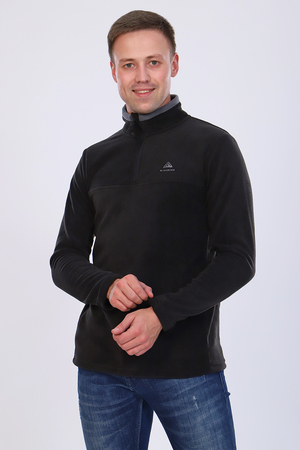 Толстовка мужская изготовлена из флиса - мягкого, легкого и в то же время теплого износостойкого материала. Передняя полочка выполнена с кокеткой, дополненной для удобства молнией с оригинальным пуллером, имеет защиту от закусования подбородка. Слева на груди расположена небольшая вышивка. Воротник-стойка выполнен с кантом контрастного цвета.