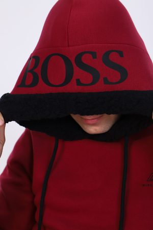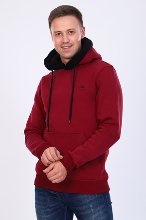 Стильная мужская толстовка из качественного футера трехнитки с начесом представлена в трех модных цветах. Изделие с капюшоном на эффектно смотрящемся подкладе контрастного цвета из ткани шерпа (имитация искусственного меха), на капюшон нанесена крупная текстовая печать. На груди выполнена небольшая вышивка-логотип. Имеется карман-кенгуру. Благодаря свободному идеально садится на любой тип фигуры.