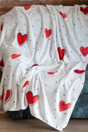 Полуторный плюшевый плед с рисунком сердечки из велсофта станет отличным подарком на любой праздник: день рождения, 8 марта, новоселье, юбилей, свадьбу!