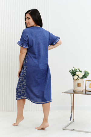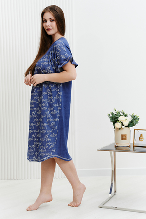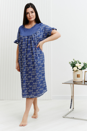 Сорочка женская, прямого силуэта, рукав короткий цельнокроенный с рюшей, горловина округлая. На полочке кокетка. Сборка верхней части полочки по линии притачивания кокетки обеспечивает изделию достаточную свободу и комфорт.