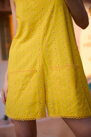 Яркий молодежный комбинезон из шитья. На передней части два накладных кармана. Бретели с возможностью регулировки.