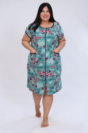 Халат женский на молнии из кулирки, свободного кроя, подойдет на любую фигуру.