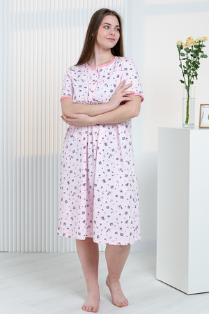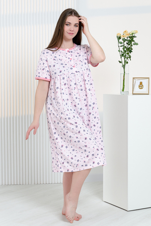 Сорочка женская из кулирного полотна, 100% хлопок. Сорочка свободного кроя, горловина круглая, обработана окантовкой, на кокетке прорезная планка на пуговицах, рукава обработаны окантовкой, низ сорочки подогнут на плоскошовной машине. Эта сорочка идеальна для сна, не сковывает движений. Легкая в уходе.