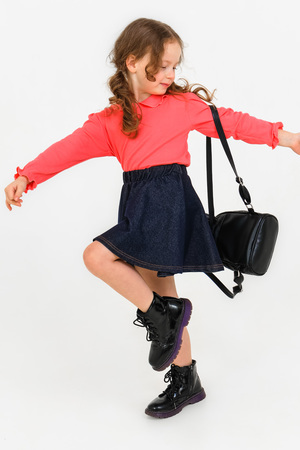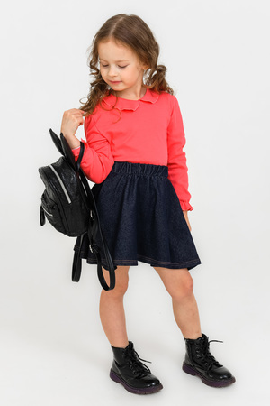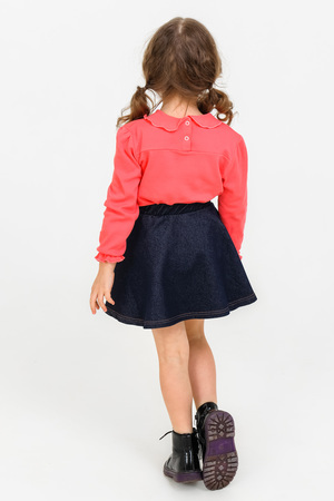 Юбка из ткани джинс-стрейч. Отстрочки выполнены жёлто-оранжевыми нитками, что ещё более усиливает впечатление, что изделие из джинсы. Хотя это не так, ткань на юбочке более тонкая, что делает её комфортной по сравнению с обычной джинсовой юбкой. Пояс на резинке позволяет надевать эту модель без особых проблем. Крой полусолнце не сковывает движения, а это так важно в детском возрасте, когда большинство игр активные и требуется бегать, прыгать, скакать. Модель идеальна для ношения в детском саду. А если с этой юбкой надеть лонгслив артикул 1165, то получится идеальный образ в котором можно пойти на праздник. Если в комплект подобрать футболку красного цвета артикул 1211, то получится отличный повседневный образ. Наполните гардероб маленькой принцессы яркими красками с брендом Modestreet.