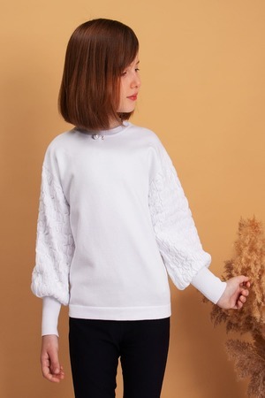 Элегантный джемпер для девочки, декорированный брошью - бусиной со стразами. Мягкий, вязаный трикотаж не сковывает движений, обладает хорошей воздухопроницаемостью и приятно облегает тело. Джемпер прекрасно сочетается как с юбками, так и с брюками. Подойдет для посещения школы, официального или праздничного мероприятия. Размер 128 (рост 122-128 см) длина изделия 46 см, обхват груди 68 см, длина рукава 46 см. Размер 134 (рост 128-134 см) длина изделия 50 см, обхват груди 74 см, длина рукава 48 см. Размер 140 (рост 134-140 см) длина изделия 52 см, обхват груди 76 см, длина рукава 52 см. Размер 146 (рост 140-146 см) длина изделия 54 см, обхват груди 78 см, длина рукава 54 см. Размер 152 (рост 146-152 см) длина изделия 58 см, обхват груди 84 см, длина рукава 58 см.