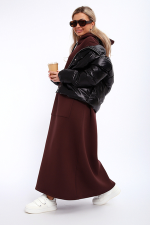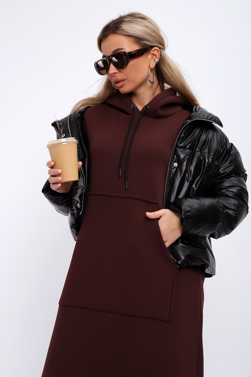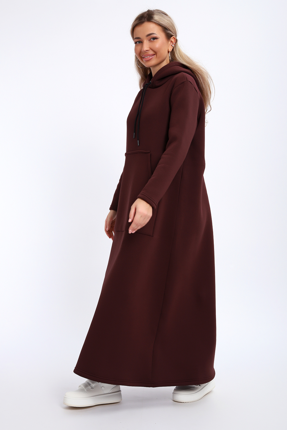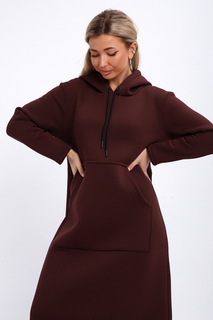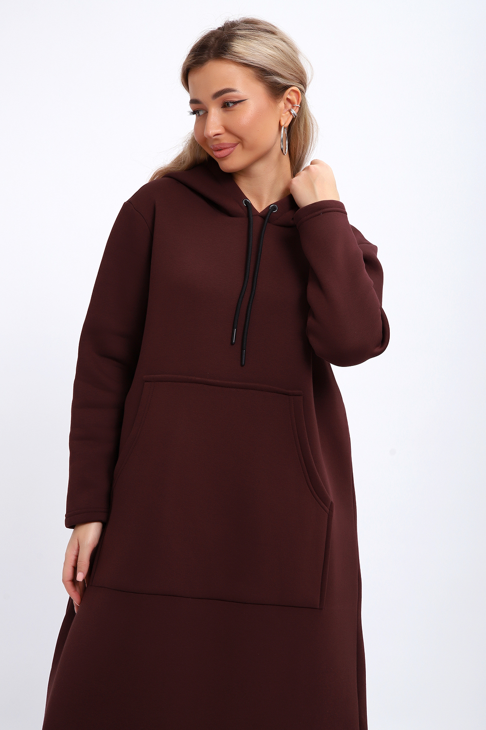 Стильное спортивное платье свободного силуэта изготовлено из мягкого, хлопкового 3-х ниточного футера качества карде с начёсом, который имеет большую плотность (320 гр/м кв),