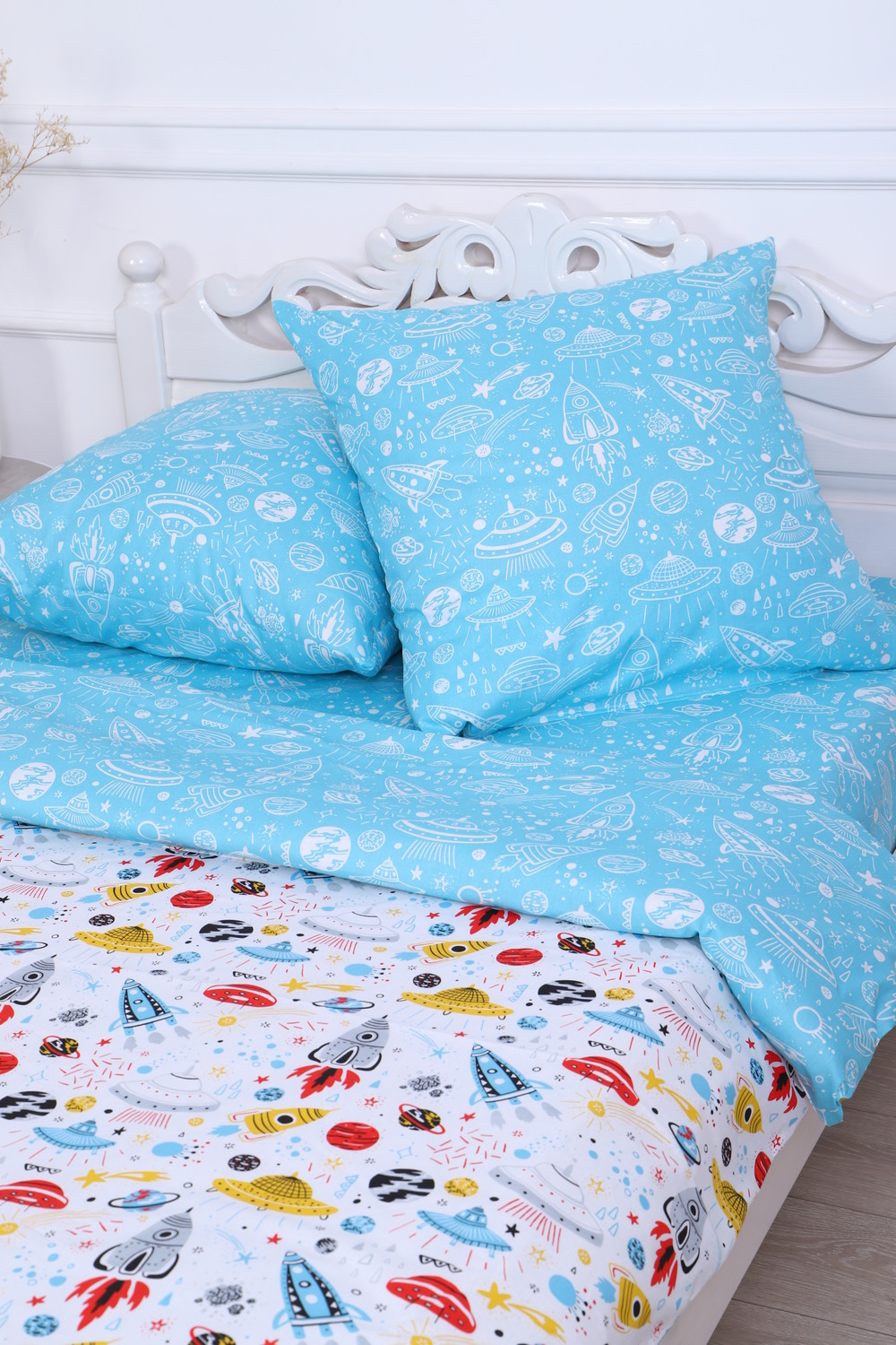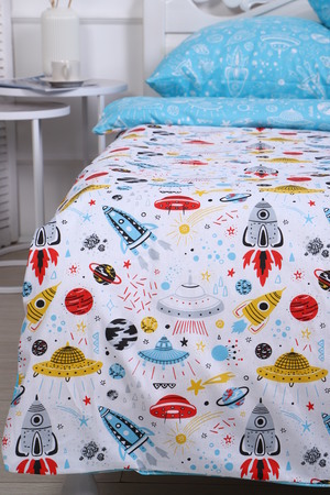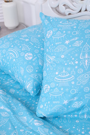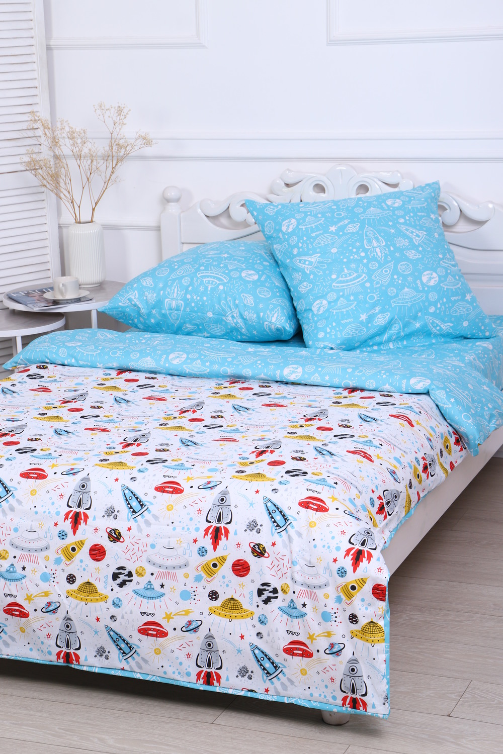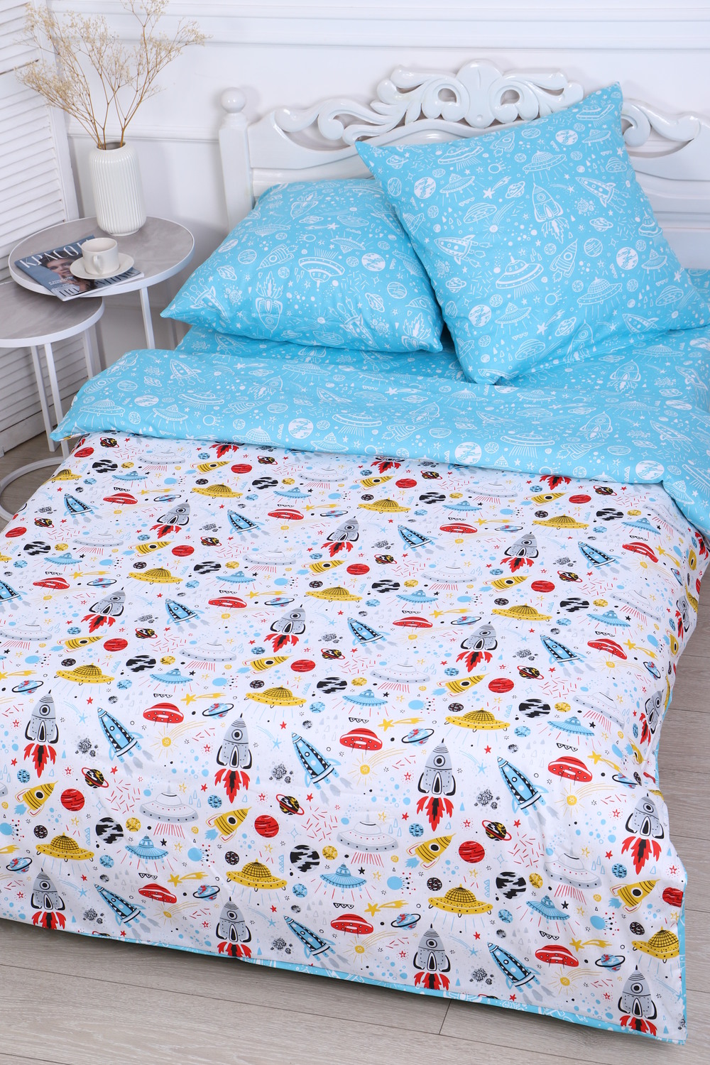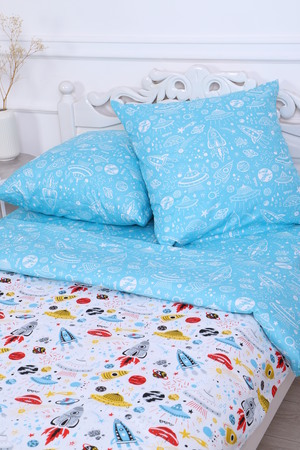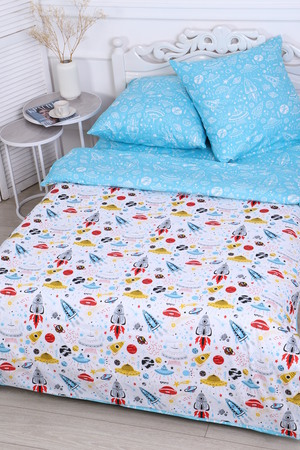 Комплект Постельного белья 1,5 спальное поплин Космическая одиссея. Комплект состоит из 4-х постельных принадлежностей: простынь 150х220 см, пододеяльник 145х215 см, наволочка 2 шт. 70х70 см. с клапаном - наволочки в дизайне простыни. Данный полутороспальный постельный комплект отличается высоким качеством и ярким дизайном, который идеально подойдет к любому интерьеру детской комнаты. При его изготовлении использовалась ткань из 100% хлопка особого переплетения - ткань поплин плотностью 125 гр. Это плотный, но в то же время мягкий, гладкий и приятный к телу материал, быстро сохнет и легко гладится. При уходе рекомендована стирка при температуре не более 40 градусов. Ткань гипоаллергенна и экологична, подходит как для маленьких детей, так и взрослых. КПБ представлено в расцветке космической тематики – идеальный подарок маленькому космонавту! Также комплект белья в яркой расцветке отличный подарок мужчине и женщине – это может быть коллега, бабушка с дедушкой, родные и друзья. На праздники: свадьба, новоселье, день рождения, юбилей, крестины, Пасха, день космонавтики 12 апреля, день защиты детей, окончание учебного года - милый презент явно не останется незамеченным и вызовет настоящий восторг. Комплект КПБ из поплина - это лучшее решение покупки для дома, дачи, и в подарок. Мы гарантируем качество своего продукта за счет полного цикла производства. В ассортименте компании широкий выбор расцветок на любой вкус и интерьер.