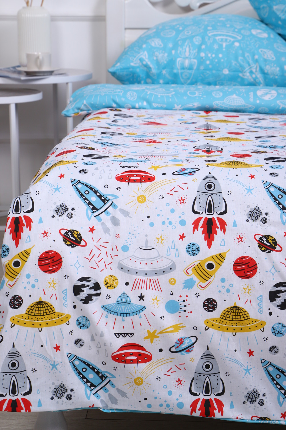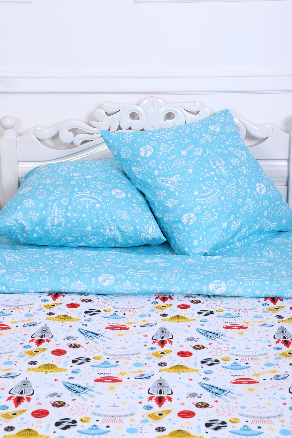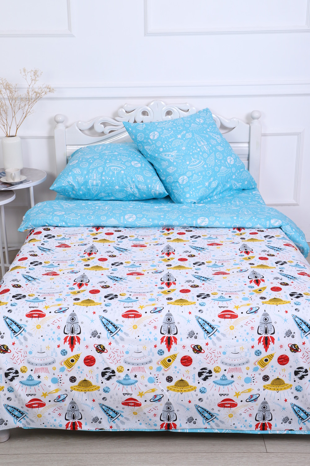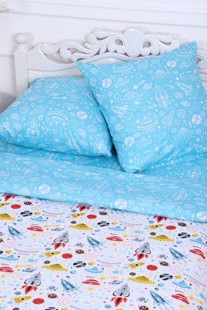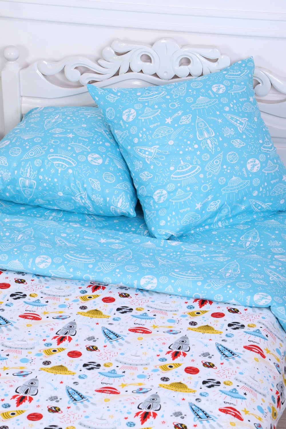 Комплект Постельного белья 1,5 спальное поплин Космическая одиссея. Комплект состоит из 4-х постельных принадлежностей: простынь 150х220 см, пододеяльник 145х215 см, наволочка 2 шт. 70х70 см. с клапаном - наволочки в дизайне простыни. Данный полутороспальный постельный комплект отличается высоким качеством и ярким дизайном, который идеально подойдет к любому интерьеру детской комнаты. При его изготовлении использовалась ткань из 100% хлопка особого переплетения - ткань поплин плотностью 125 гр. Это плотный, но в то же время мягкий, гладкий и приятный к телу материал, быстро сохнет и легко гладится. При уходе рекомендована стирка при температуре не более 40 градусов. Ткань гипоаллергенна и экологична, подходит как для маленьких детей, так и взрослых. КПБ представлено в расцветке космической тематики – идеальный подарок маленькому космонавту! Также комплект белья в яркой расцветке отличный подарок мужчине и женщине – это может быть коллега, бабушка с дедушкой, родные и друзья. На праздники: свадьба, новоселье, день рождения, юбилей, крестины, Пасха, день космонавтики 12 апреля, день защиты детей, окончание учебного года - милый презент явно не останется незамеченным и вызовет настоящий восторг. Комплект КПБ из поплина - это лучшее решение покупки для дома, дачи, и в подарок. Мы гарантируем качество своего продукта за счет полного цикла производства. В ассортименте компании широкий выбор расцветок на любой вкус и интерьер.