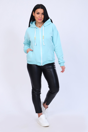 Толстовка женская на молнии, прекрасный вариант для дополнения образа к джинсам, брючкам и леггинсам. Чудесная возможность утеплится, не отказываясь от стиля и элегантности. Как правило, материал играет важную роль в ощущении тепла и уюта, в этой модели мы использовали футер 3-х нитку диагональ петля, где воздушная петелька на изнанке создает прослойку мягкости. Толстовка выполнена со спущенным рукавом, с декоративными отстрочками по всему изделию. Карманы накладные, манжеты на рукавах и поясе выполнены из мягкого кашкорсе. На шнурках установлены резиновые декоративные фиксаторы. Рекомендованная температура стирки 30-40 °С. Рост модели на фото 164 см, размер 48