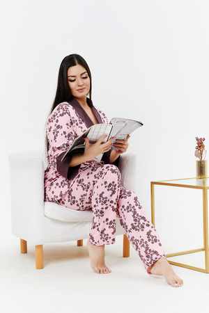Женский комплект брюки и кофта. Ткань хлопковая. Отлично пропускает воздух, не сковывает движения. Модный, удобный и практичный вариант для дома и сна.