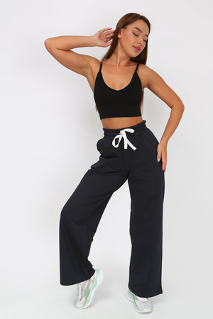 Разнообразь свой гардероб модными брюками-палаццо с поясом на резинке со шнурком. Брюки свободные, с завышенной талией, по бокам карманы с отрезным бочком. Подойдут для повседневной носки, для танцев и прогулок. Ткань 2-х нитка компакт пенье. Рост модели на фото 160 см, размер 44