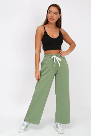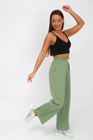 Разнообразь свой гардероб модными брюками-палаццо с поясом на резинке со шнурком. Брюки свободные, с завышенной талией, по бокам карманы с отрезным бочком. Подойдут для повседневной носки, для танцев и прогулок. Ткань 2-х нитка компакт пенье. Рост модели на фото 160 см, размер 44
