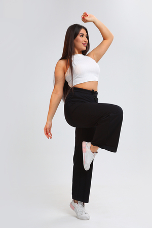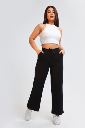 Разнообразь свой гардероб модными брюками-палаццо с поясом на резинке со шнурком. Брюки свободные, с завышенной талией, по бокам карманы с отрезным бочком. Подойдут для повседневной носки, для танцев и прогулок. Ткань 2-х нитка компакт пенье. Рост модели на фото 160 см, размер 44