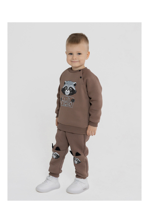 Брюки "Енот" для мальчика из мягкого футера с начёсом. Пояс на резинке, низ штанины на эластичных манжетах. Принт, нанесённый методом шелкографии.