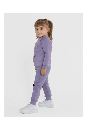 Брюки "Cat" для девочки из мягкого футера с начёсом. Пояс на резинке, низ штанины на эластичных манжетах. Принт, нанесённый методом шелкографии.