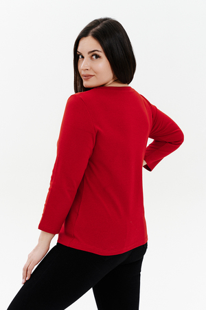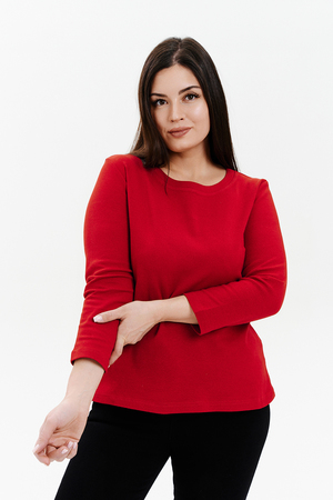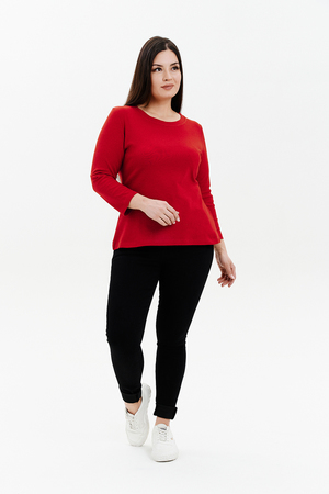 Джемпер женский из рибаны, состав 95% хлопок, 5% лайкра. Джемпер полуприлегающий, рукав втачной, длинной 3/4, горловина круглая, низ обработан на плоскошовной машине. Благодаря такому составу, джемпер не будет стеснять движений. Легкий в уходе.
