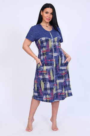 Халат удлинённый на молнии с коротким рукавом и поясными завязками. Халат будет хорошо смотреться на разных типах женской фигуры и подойдет для женщин всех возрастов. Изделие выполнено из 100% хлопка, благодаря чему модель абсолютно комфортна в носке, мягкая и приятная к телу, что прекрасно подойдет для дома, дачи и отдыха.