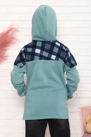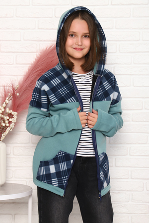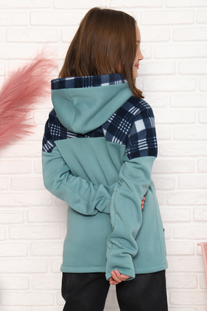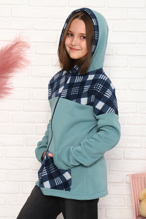 Детская комбинированная толстовка с капюшоном, на молнии. Карман "кенгуру". Длинный рукав без манжетов. Теплая и удобная.