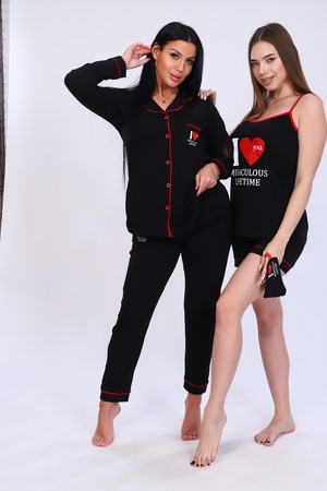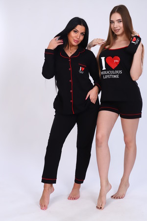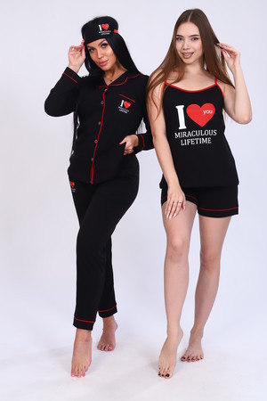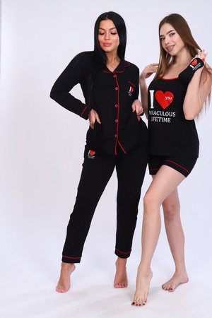 Женский домашний комплект из 5 предметов. В комплектации - рубашка на пуговицах, штаны с карманами(не длинные), шорты, топ на бретелях, повязка. Костюмы сшиты из трикотажной ткани в составе 100 % хлопок. Трикотаж хорошо пропускает воздух и впитывает влагу, также обладает гипоаллергенными свойствами, что делает изделия максимально комфортным и приятным к телу. Комплект может стать отличным подарком для женщин и девушек разного возраста на 8 марта, День рождения, Новый год и просто без повода. Порадуйте себя и своих близких одеждой от бренда My Love, производителя домашней и повседневной одежды.