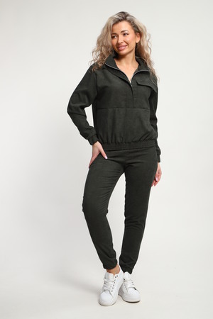 Класный костюм из микровельвета ,толстовка воротник стойка на молнии с клапаном,рукав на резинке ,и брюки с карманами на резинке внизу