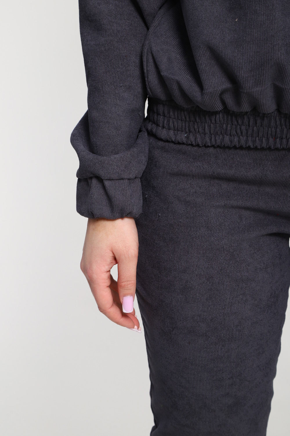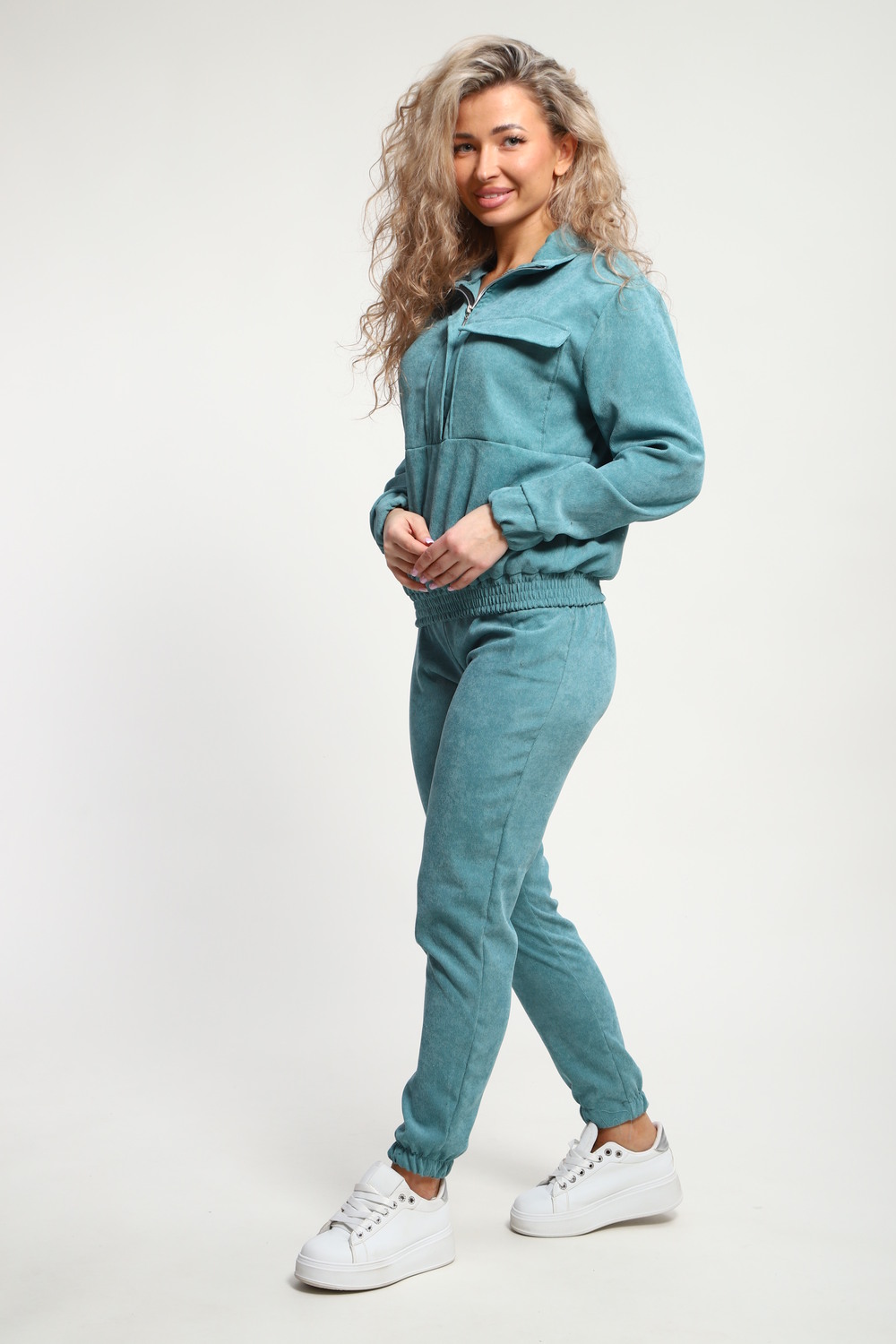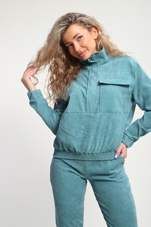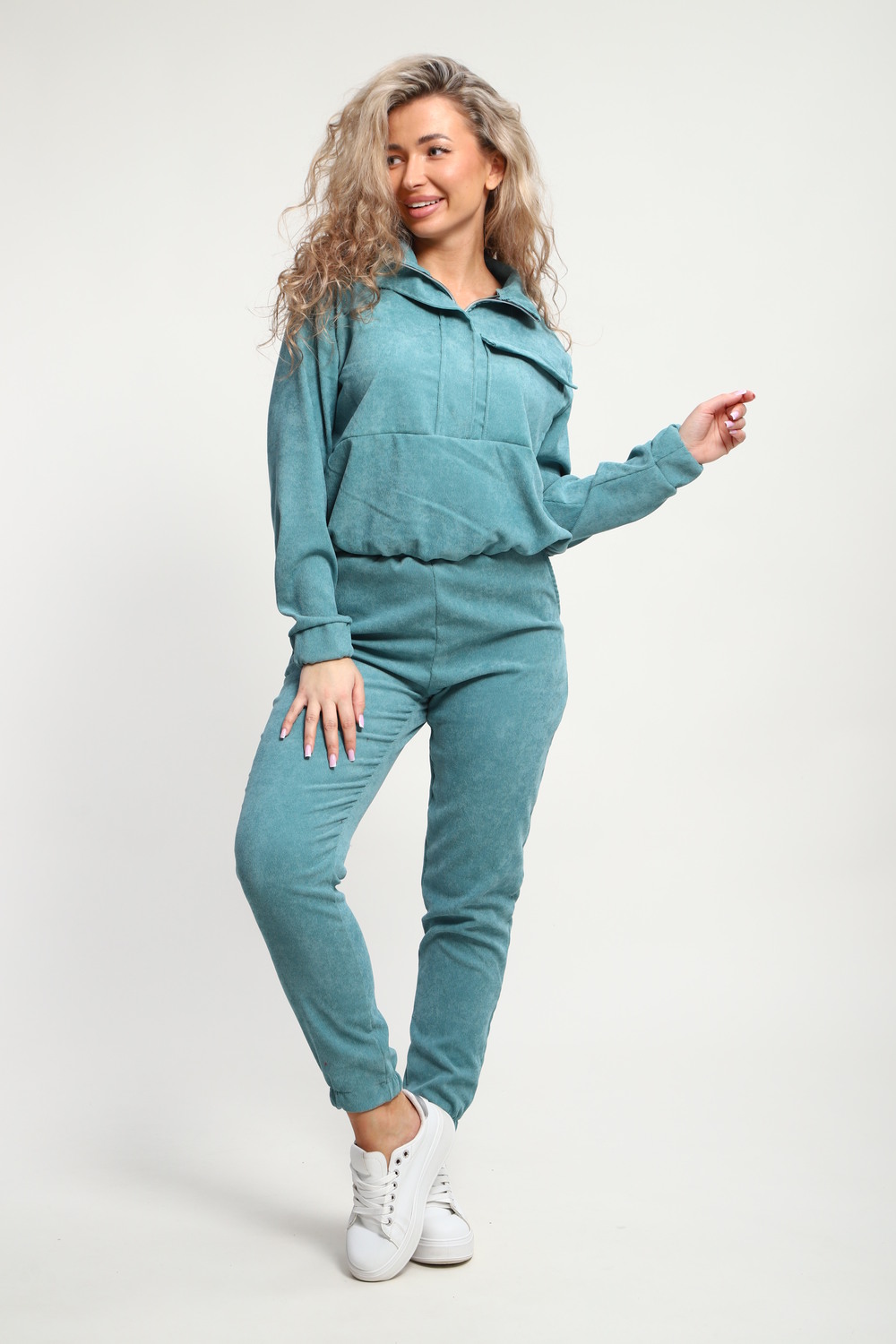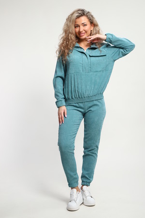 Класный костюм из микровельвета ,толстовка воротник стойка на молнии с клапаном,рукав на резинке ,и брюки с карманами на резинке внизу