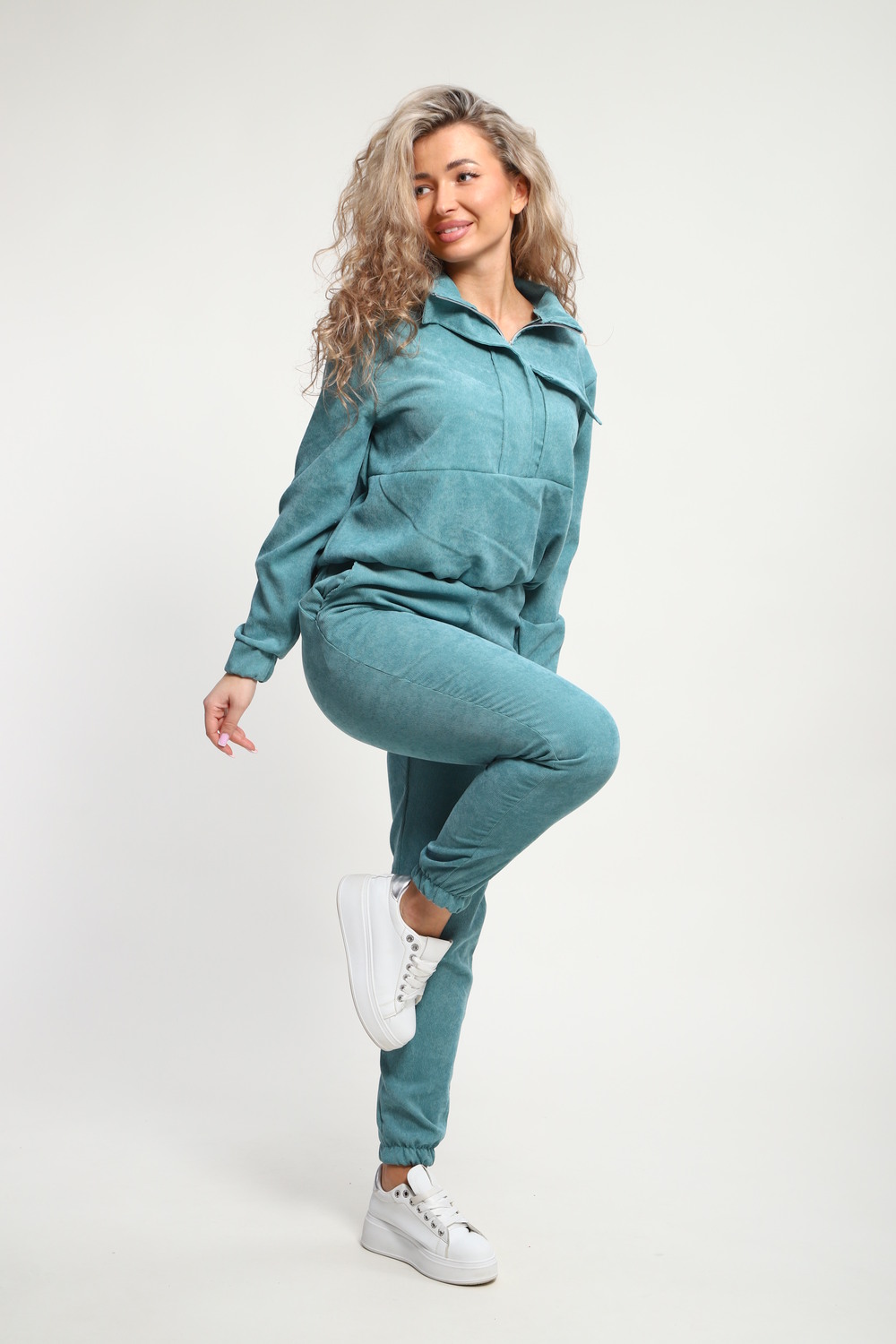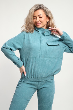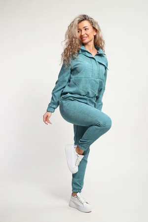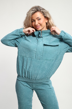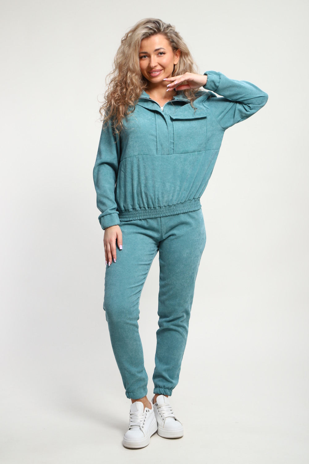 Класный костюм из микровельвета ,толстовка воротник стойка на молнии с клапаном,рукав на резинке ,и брюки с карманами на резинке внизу