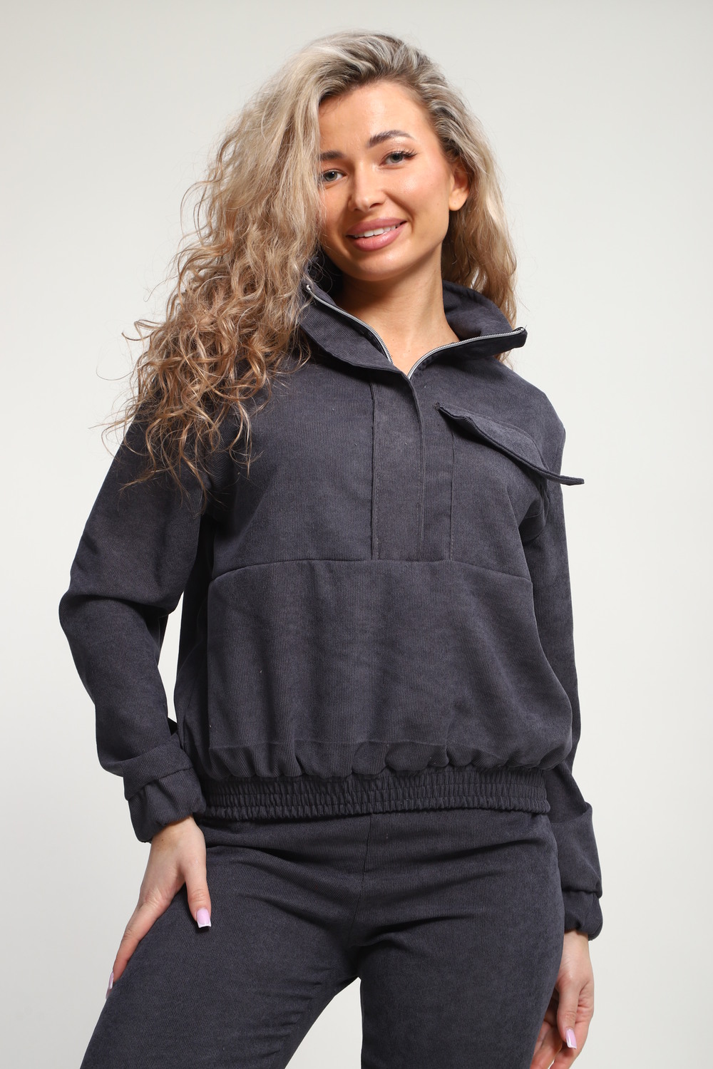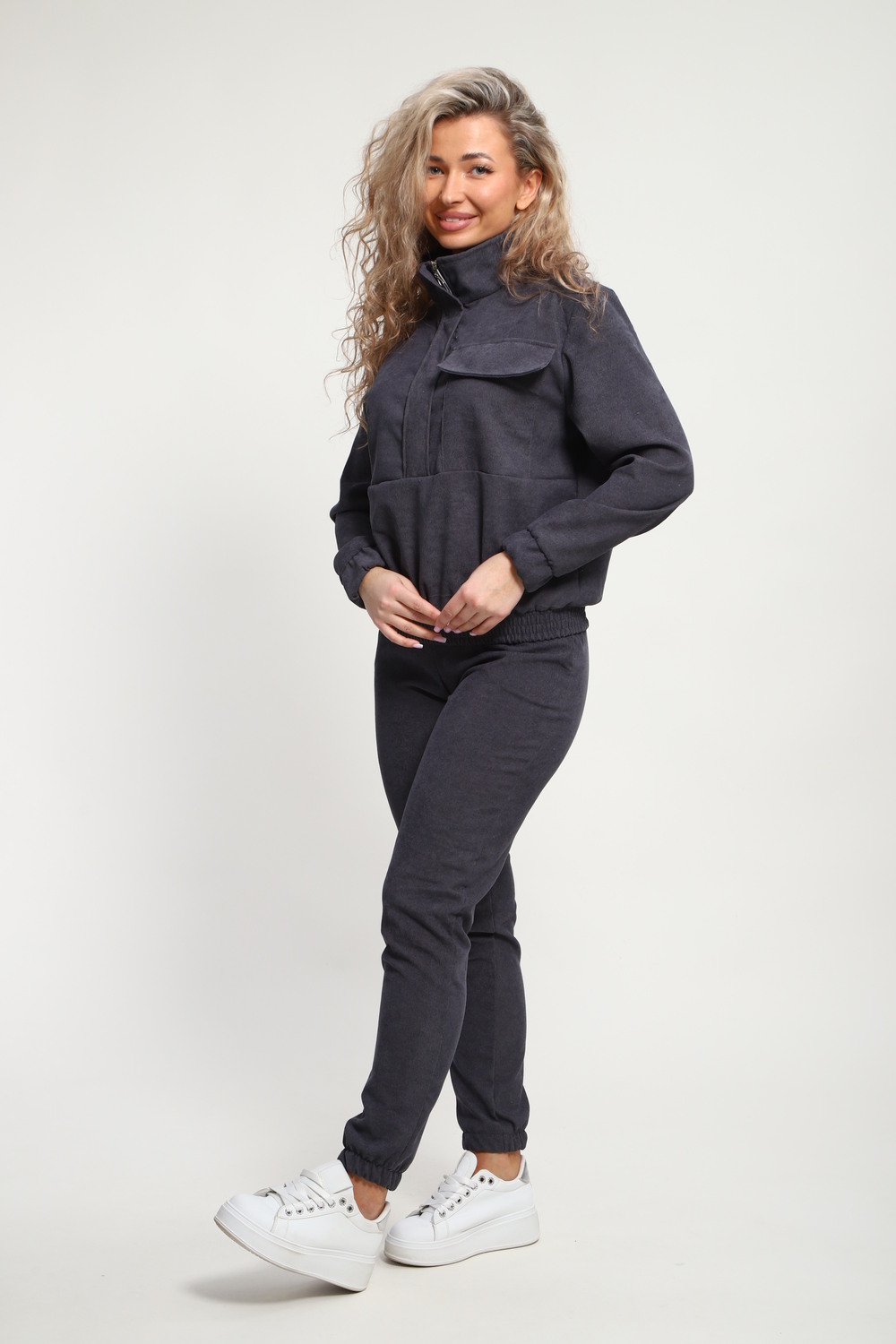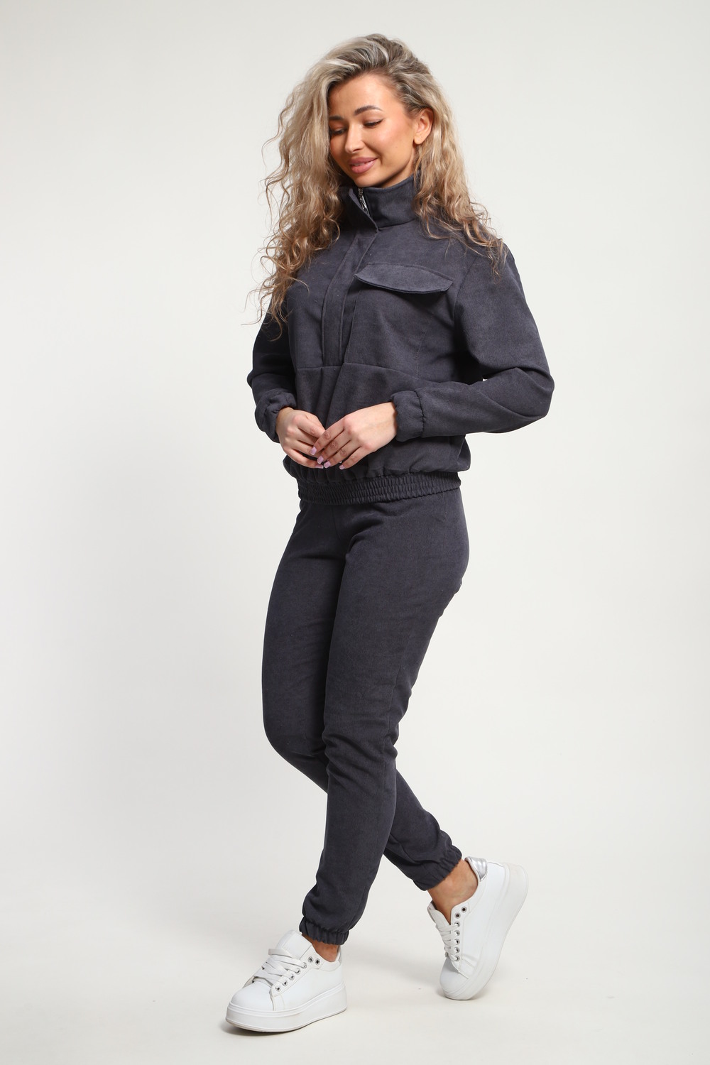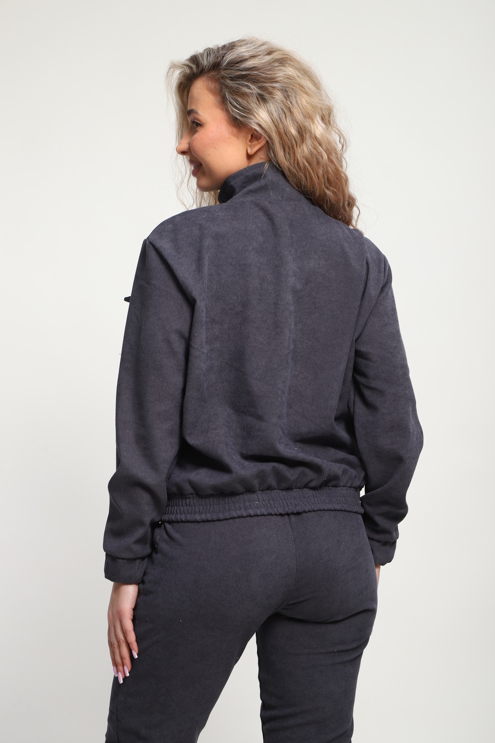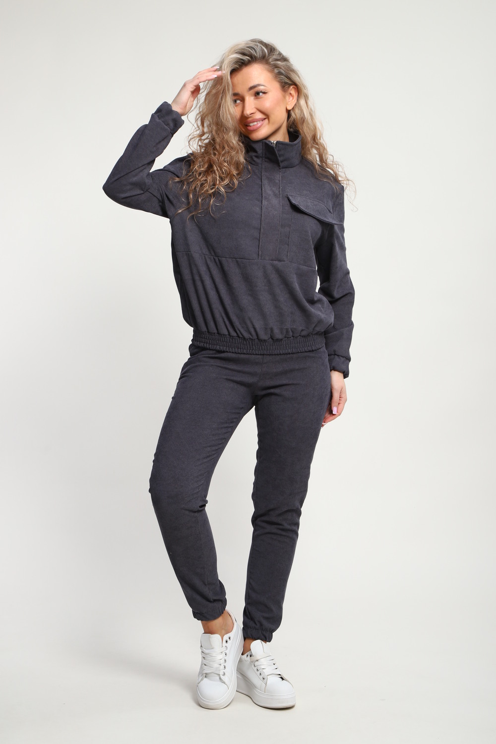 Класный костюм из микровельвета ,толстовка воротник стойка на молнии с клапаном,рукав на резинке ,и брюки с карманами на резинке внизу