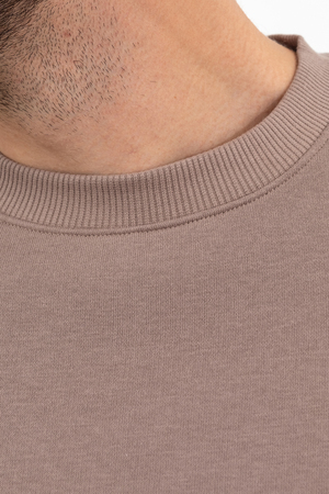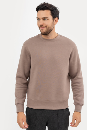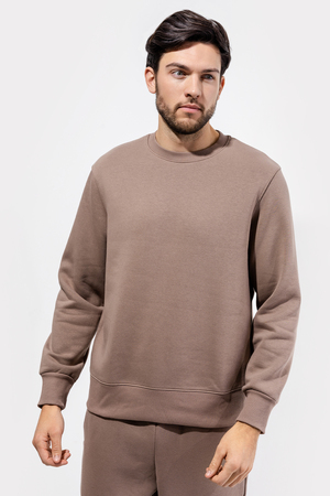 Джемпер из трикотажного футера с теплым подчесом. Длина до середины бедер, силуэт прямой. Линия плеча спущена. Рукава длинные, с притачными манжетами. Горловина круглой формы. Отличный вариант для стильных городских образов!
