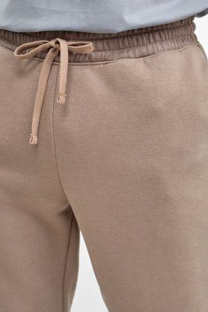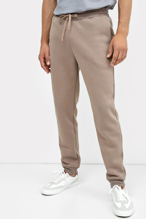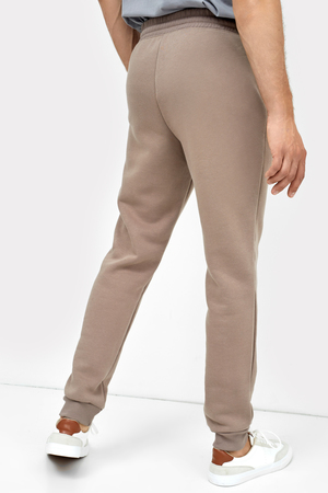 Стильные мужские брюки-джоггеры из трикотажного футера с теплым подчесом. Силуэт зауженный, штанины с манжетами. Есть удобные боковые карманы. В поясе – эластичная тесьма и шнурок-затяжка. Просто, комфортно, актуально!