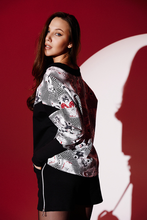 Молодежный костюм, состоит объёмного свитшота и шорт. Свитшот выполнен в технике COLOR BLOCKING c длинными рукавами обработанные высокими стильными манжетами из кашкорсе. Линия низа переда немного завышена, что придает свитшоту особую оригинальность. Шорты с молниями в боковых швах и с декоративной тесьмой на карманах с ультрамодной широкой резинкой на поясе. Этот костюм подойдет для встреч с друзьями и вечерних летних прогулок. Для самых настоящих модниц !