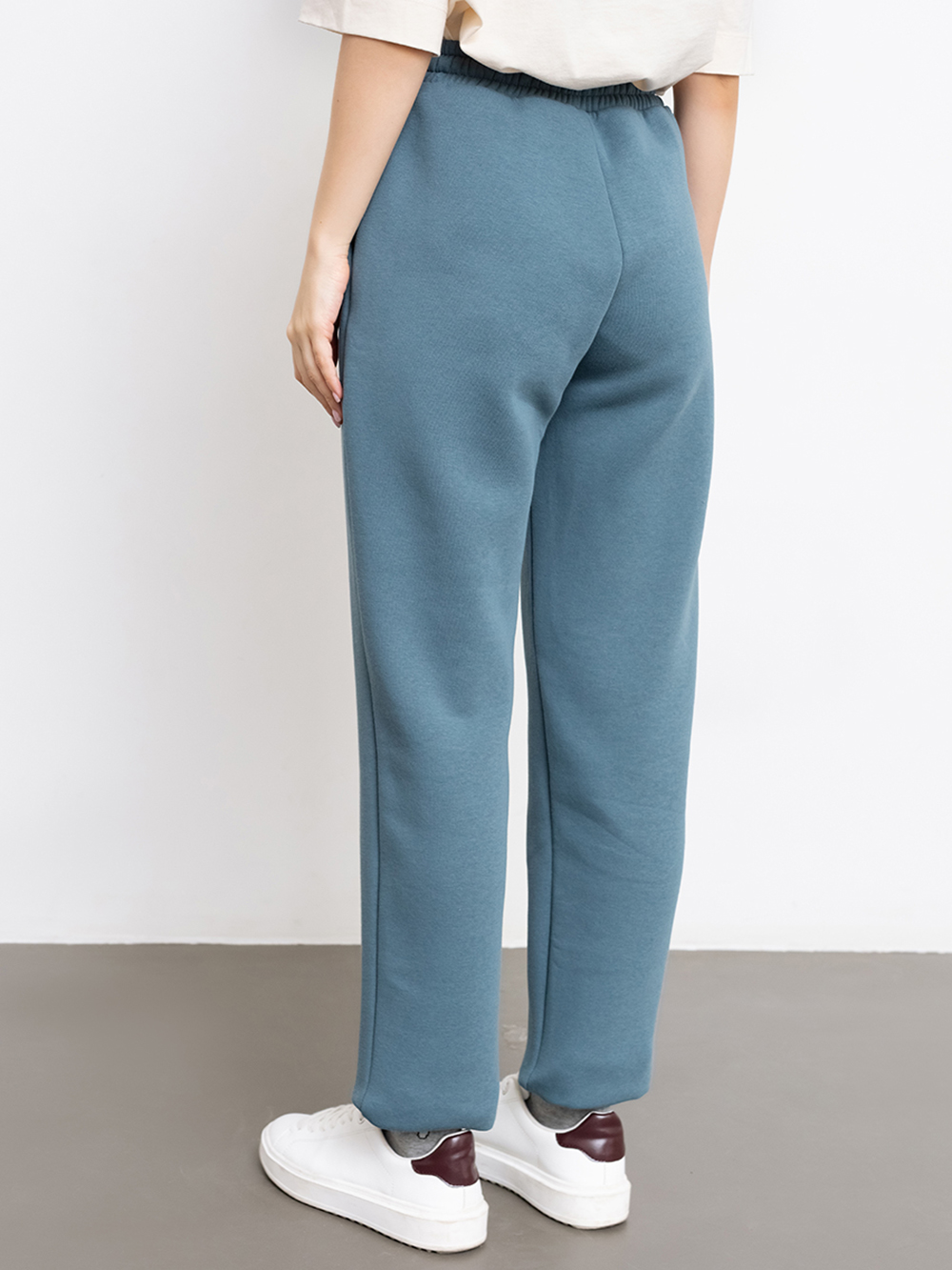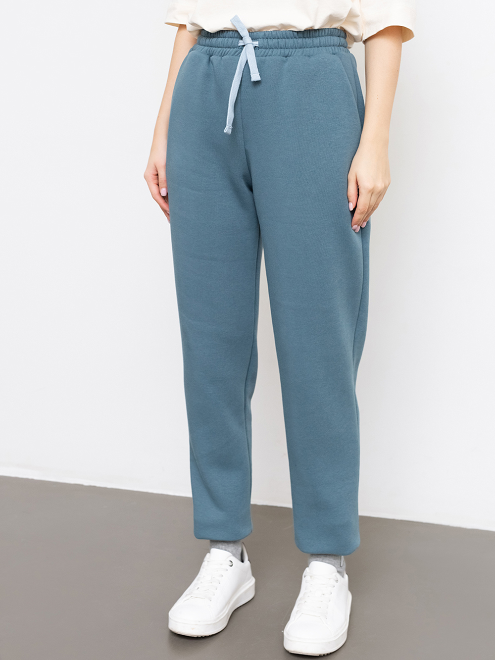 Брюки из футера с теплым подчесом – мягкого, гигроскопичного и неприхотливого трикотажного полотна. Силуэт брюк прямой. Пояс с эластичной тесьмой внутри и проложенными по нему отделочными строчками. Регулировать ширину по талии позволяет шнурок-завязка. Передние карманы делают брюки еще более удобными. Рекомендуем!