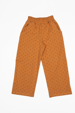 Брюки выполнены из набивного футера. Прямая посадка и резинка на талии позволят ребенку чувствовать себя комфортно во время любых телодвижений. Модный узор в горошек позволит ему выглядеть стильно, а также станет лаконичным дополнением к футболке или лонгсливу.