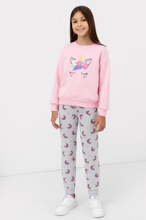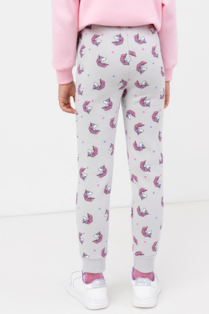 Брюки из трикотажного футера с теплым и нежным подчесом для девочек. Силуэт прямой. Пояс с резиной внутри и регулировочным шнурком-завязкой. Есть удобные боковые карманы. Штанины завершаются широкими манжетами. Мило и практично!