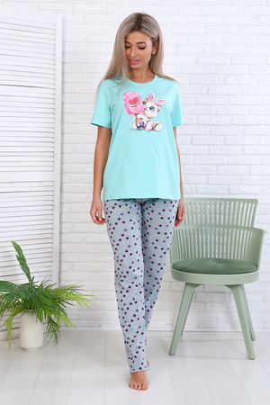 Женский трикотажный костюм с брюками в крупный разноцветный горох - идеальный выбор для тех, кто следит за модой и ценит домашний уют! Костюм прекрасно подходит для дома, прогулок и повседневной носки. В свете последних модных тенденций, он идеально подойдет для семейной фотосессии. Брюки свободные, с двумя боковыми карманами, на широком поясе с резинкой, на полочке кофты имеется принт в виде забавного котенка в ободке с заячьими ушками, который лакомится мороженым. Легкая и приятная к телу модель станет залогом приятного времяпровождения. Яркий и стильный костюм несомненно будет радовать хозяйку и поднимать настроение ей и окружающим! В продаже имеется аналогичный детский костюм 65021; продается отдельно. Рост модели на фото 165 см, размер 44