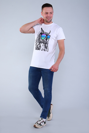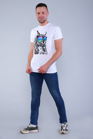 Футболка мужская с ярким, молодёжным принтом из кулирки с лайкрой качества пенье. Футболка в стиле унисекс, прямого кроя, круглая горловина обработана планкой из основного полотна, короткий втачной рукав. Футболка - это базовая, необходимая вещь как в мужском, так и в женском гардеробе. Рост модели на фото 183 см, размер 52