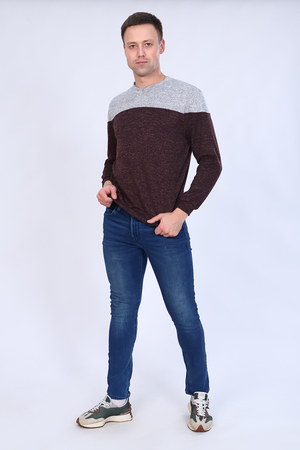Модный и стильный мужской джемпер, V-образный ворот. Низ и рукав на манжете. Удобно и практично. Обратите внимание на длину рукава, Джемпер подходит для среднего и маленького роста.