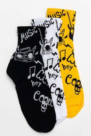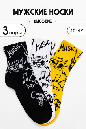 Набор высоких мужских носков с широкой резинкой в стильной расцветке. В упаковке 3 пары - по 1 паре каждой расцветки. В продаже есть аналогичные женские и подростковые носки