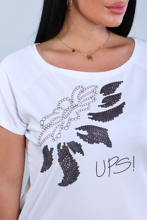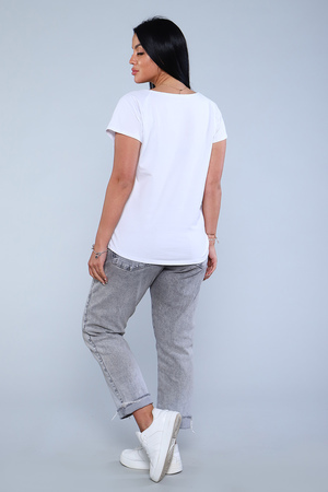 Женская футболка с оригинальным принтом, из кулирки с лайкрой высокого качества пенье. Модель свободного силуэта, круглая горловина, короткий рукав-реглан. Базовая футболка является универсальным предметом женского гардероба, отлично сочетается с юбкой, брюками, лосинами, но и создаст эффектный образ со строгим пиджаком или кардиганом.